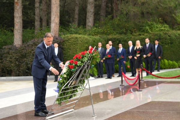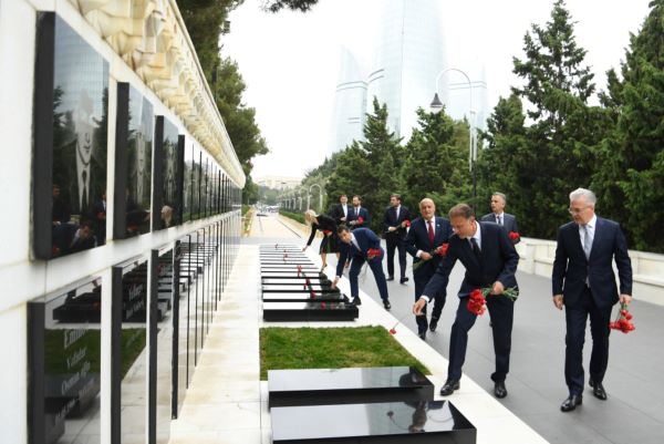 Sonra nümayəndə heyəti Şəhidlər xiyabanına gələrək Azərbaycanın azadlığı və suverenliyi uğrunda mübarizədə canlarından keçmiş qəhrəman Vətən övladlarının xatirəsini ehtiramla anıb, məzarları üzərinə tər çiçəklər düzüb, "Əbədi məşəl" abidəsi önünə əklil qoyub.