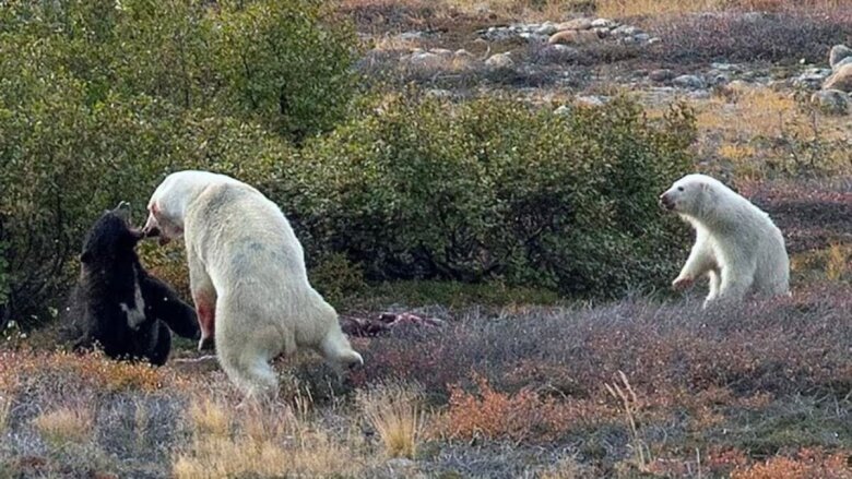Ağ ayı ilə qara ayının döyüşü... - Fotolar