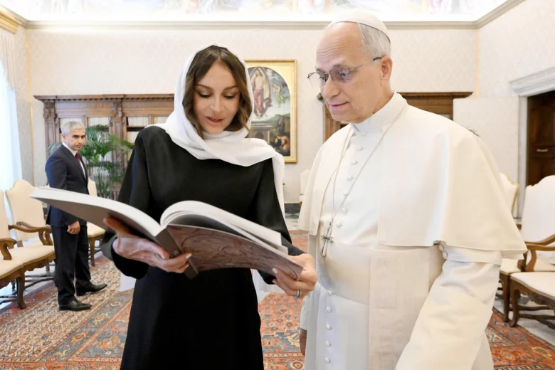 Roma Papası XIV Leo Vatikan dövləti ilə Azərbaycan Respublikası arasında ikitərəfli əməkdaşlığın uzun tarixə malik olduğunu diqqətə çatdırıb. Roma Papası bir neçə il əvvəl Mehriban xanımın irəli sürdüyü təşəbbüslər sayəsində münasibətlərin xeyli inkişaf etdiyini deyərək, Birinci vitse-prezidentə təşəkkürünü bildirib. XIV Leo bu əməkdaşlığın dinlərarası və sivilizasiyalararası dialoqa çox böyük təkan verdiyini, Azərbaycanın da bu baxımdan dünya miqyasında ilk sıralarda yer aldığını qeyd edib.